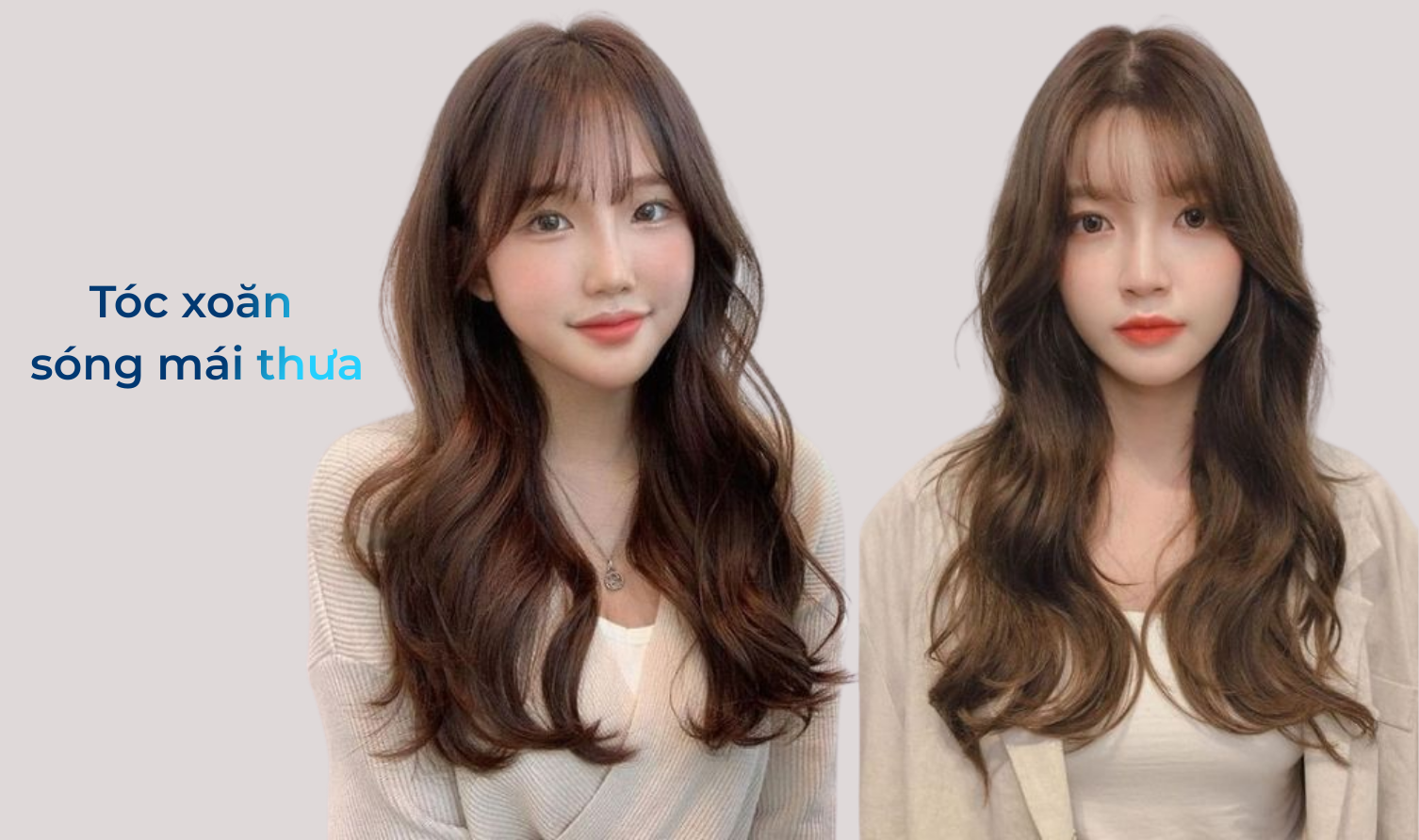 Mái thưa là lớp mặt nạ hoàn hảo giúp che bớt phần trán, trong khi những lọn sóng nước chạy dọc hai bên giúp gương mặt trông tròn trịa và trẻ trung hơn. Đây là kiểu tóc lý tưởng cho những nàng theo đuổi phong cách ngọt ngào.
