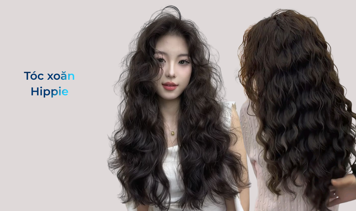 Kiểu uốn xù từ chân tóc tạo ra độ xòe tối đa sang hai bên. Sự dày dặn của tóc Hippie giúp khuôn mặt dài trở nên cân đối tức thì, đồng thời thể hiện cá tính mạnh mẽ và sành điệu.