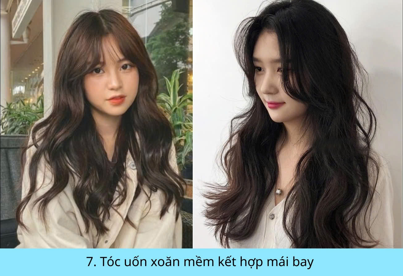 7. Tóc uốn xoăn mềm kết hợp mái bay