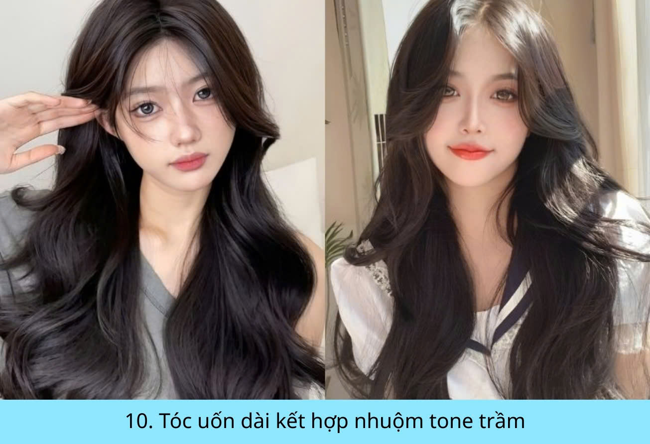 10. Tóc uốn dài kết hợp nhuộm tone trầm