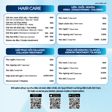 - Dịch vụ uốn - duỗi - nhuộm - tẩy tóc