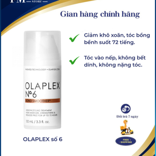 Cũng thuộc dòng sản phẩm chăm sóc tóc tốt nhất, tăng cường liên kết bên trong sợi tóc. Dường như sự khác biệt chính giữa Olaplex số 6 và OLAPLEX SỐ 3 đó là Olaplex số 6 là một công thức kem xả khô, không cần gội lại. Nó vừa giống như một sản phẩm tạo kiểu lại vừa giống sản phẩm điều trị. Trong khi Olapex số 3 là sản phẩm điều trị để áp dụng một vài lần một tuần trong 10-20 phút và sau đó phải xả sạch.
